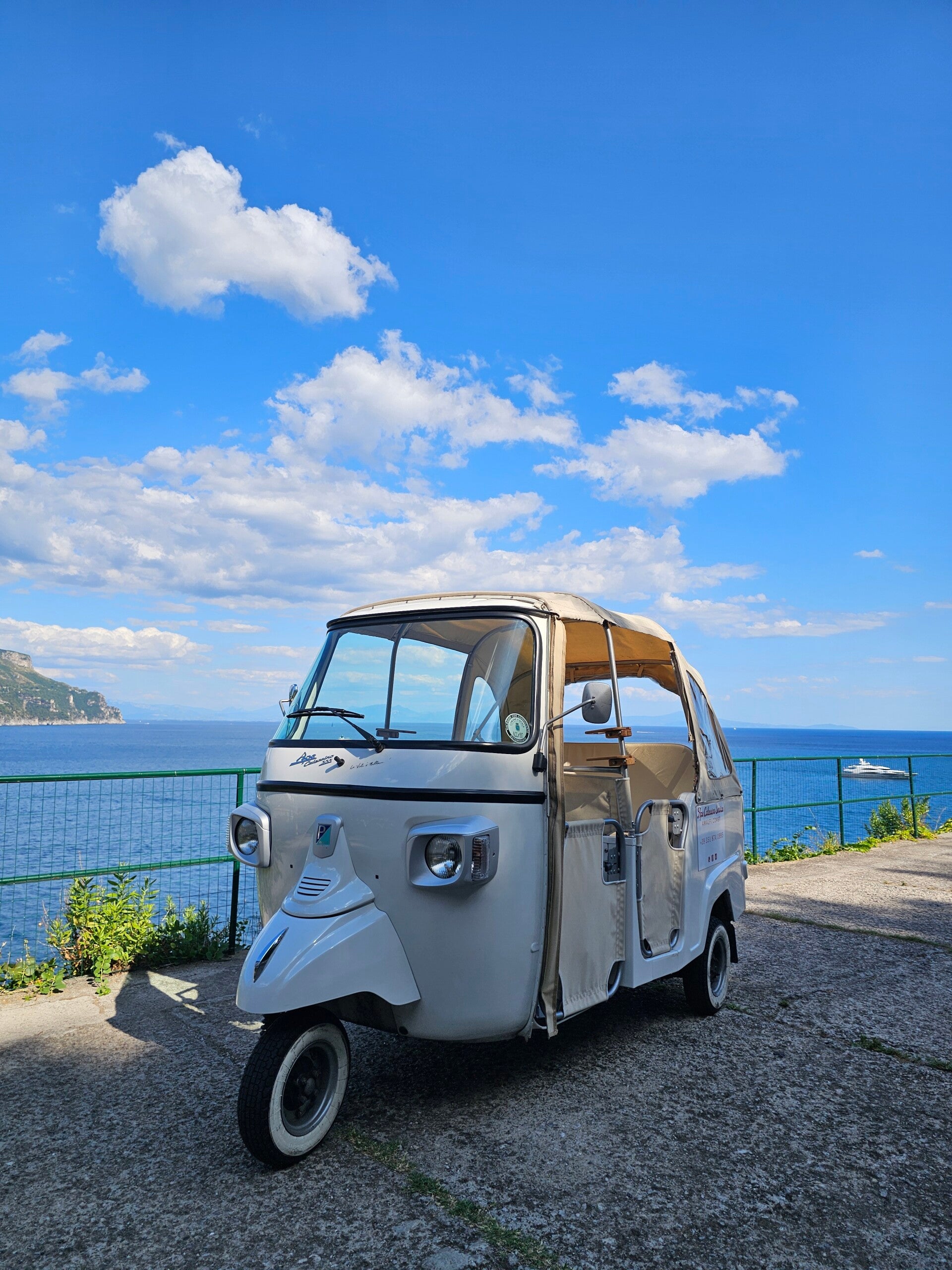 Confort: Travel aboard our characteristic Ape Calessino, enjoying the view in total relaxation.